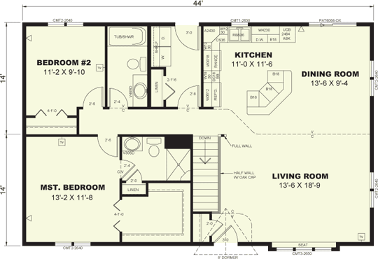 The Prairieview Dimensions: 28' x 44' Square Footage: 1232 Bedrooms: 2 Bath: 1 + 3/4 Back to Rambler Floorplans