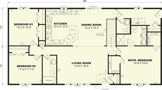 The Acadia Dimensions: 28' x 56' Square Footage: 1568 Bedrooms: 3 Bath: 2 + 1/2 Back to Rambler Floorplans