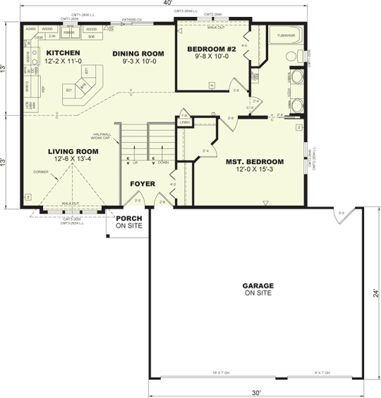 The Elmwood Dimensions: 26' x 40' Square Footage: 1040 Bedrooms: 2 Bath: 1 Back to Split Entry Floorplans